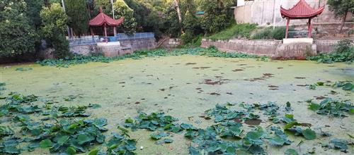 半塘碧荷水面摇,蕾亦含苞,萍亦陪漂。鲤跃险把芙蓉咬,蜓也惊到,蛙也惊到。