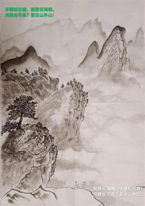 杜撰01 :手攀松石颠,脚登云海端。 问君此可高?答汝山外山
