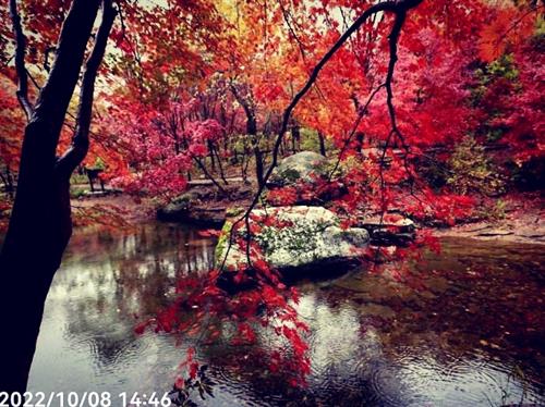 趁此有清闲。踏入秋山。壮心未老永攀前。万壑烟霞陈画卷,醉了秋天。