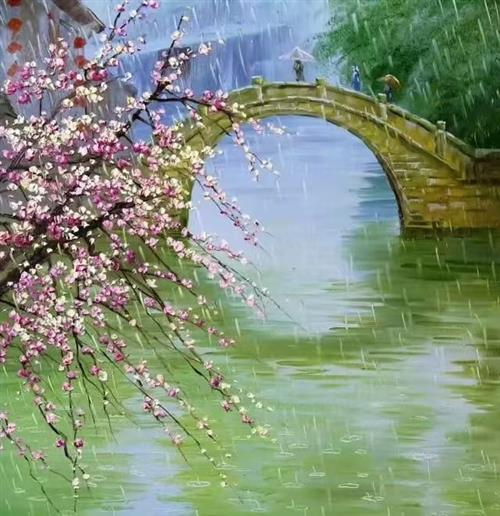 柳绿河湾烟雨细,桃红峦岭稻秧深。