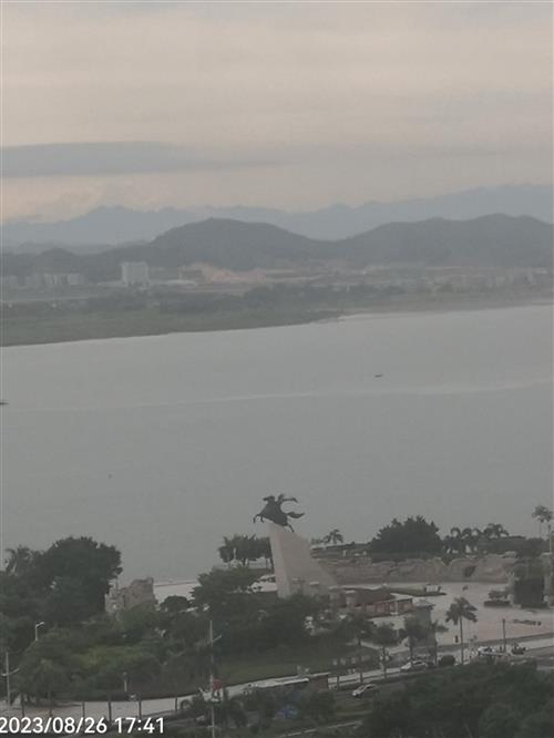 西海湾滩鸥鹭戏。槎筏如梭,晴照鱼虾起。龙马明珠山岸会。半仙塔影清波坠。