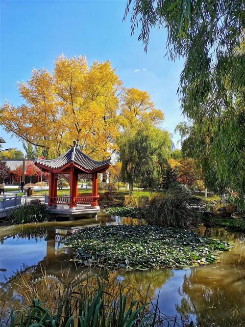 秋正好。举目枫红菊俏。漫步泉河烟水渺。清净无人扰。