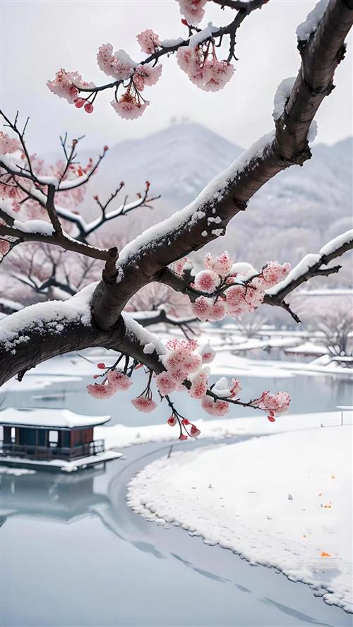 梅花香蕊胭脂粉。路桥外、雪飞风紧。竹婆娑、深壑掩幽兰,有梦在、任寒流困。
