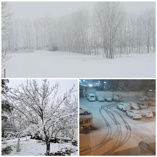 雾霭沉沉遮阳彩,六出纷纷入夜来。
