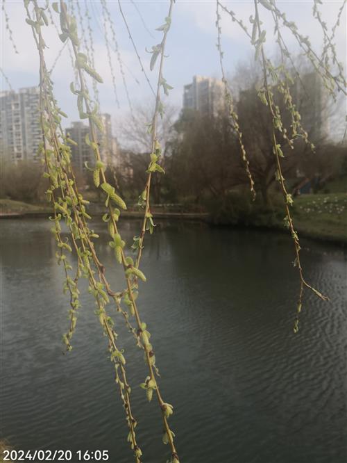 新柳垂绦鸣鹭鹤,浅溪激越映朱楼。