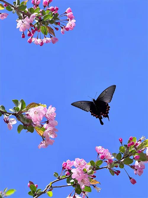 峦岭畔,笑声欢。插秧田。蝴蝶舞,蜜蜂悬。踏歌行,抬望眼,醉青山。