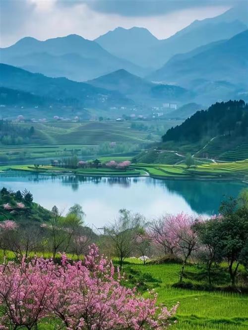 稻苗植入梯田翠,桃李敷芬园圃香。