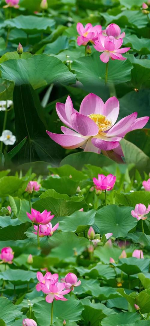 一痕晴碧舞红袖,数朵芙蓉送馥风。