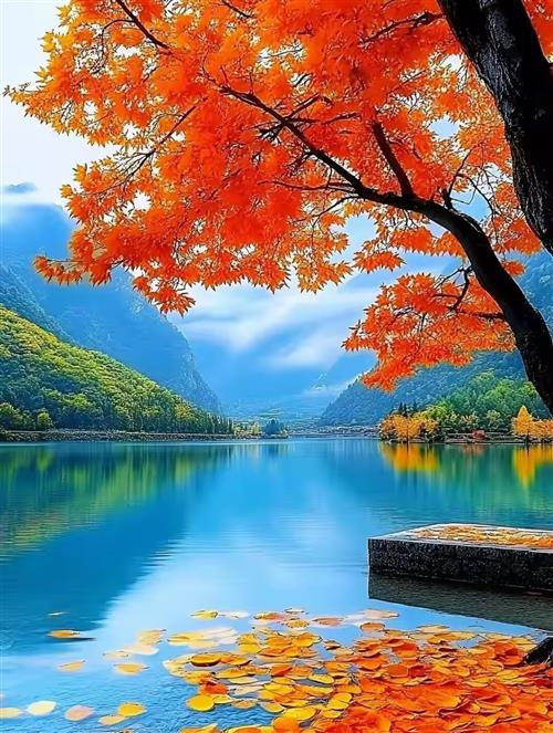 广袤田原凋粉绿,无垠峦岭灿红黄。