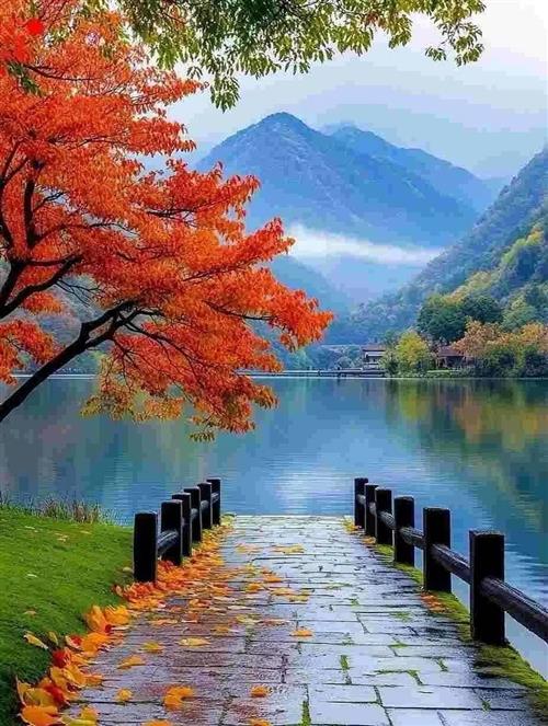独步颍河秋欲暮。霜菊姿妍香满路。枫尽染,野斑斓,碧波流远船竞渡。