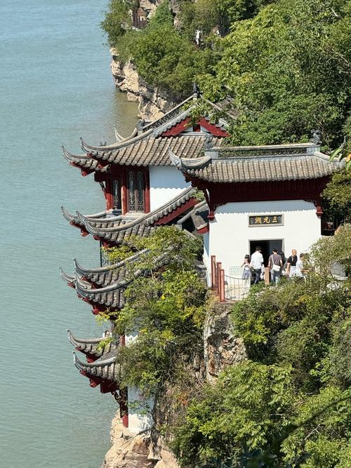 翠嶂叠江岸,白鹭戏汀洲。危崖千尺,惊涛奔涌彩云悠。太白骑鲸仙去,词客寻踪怀古,诗酒竞风流。谁解青莲志,明月照孤舟。